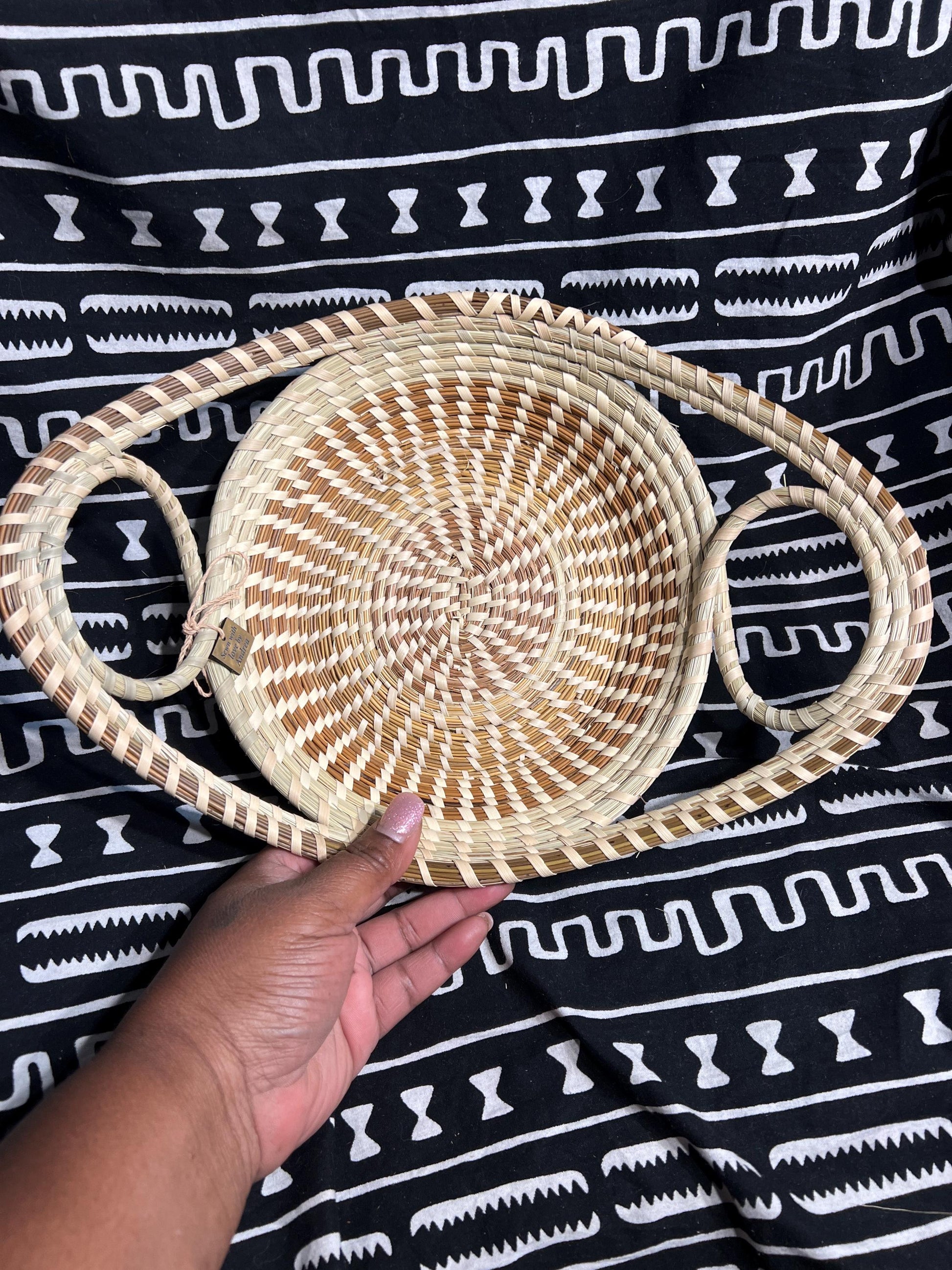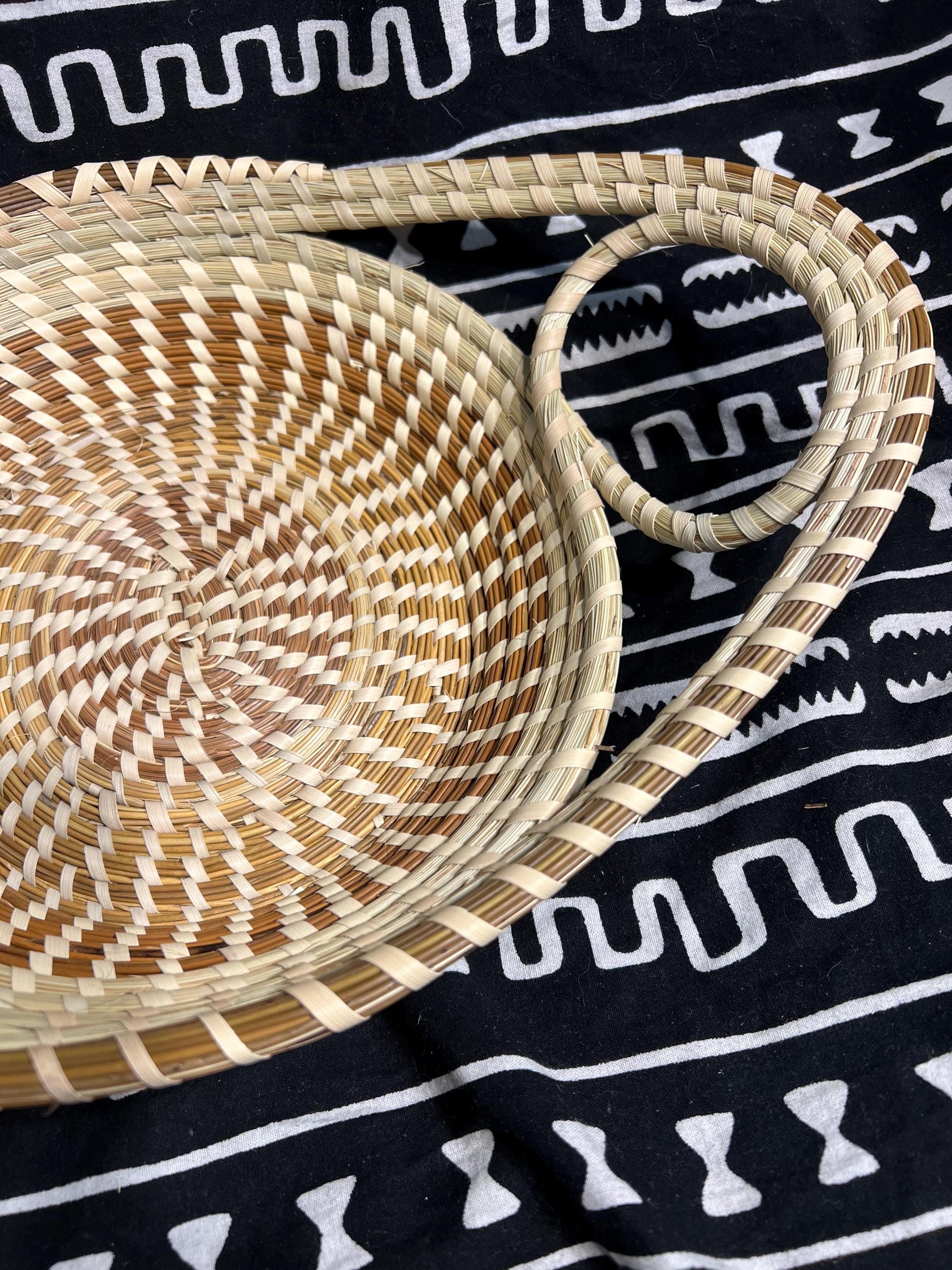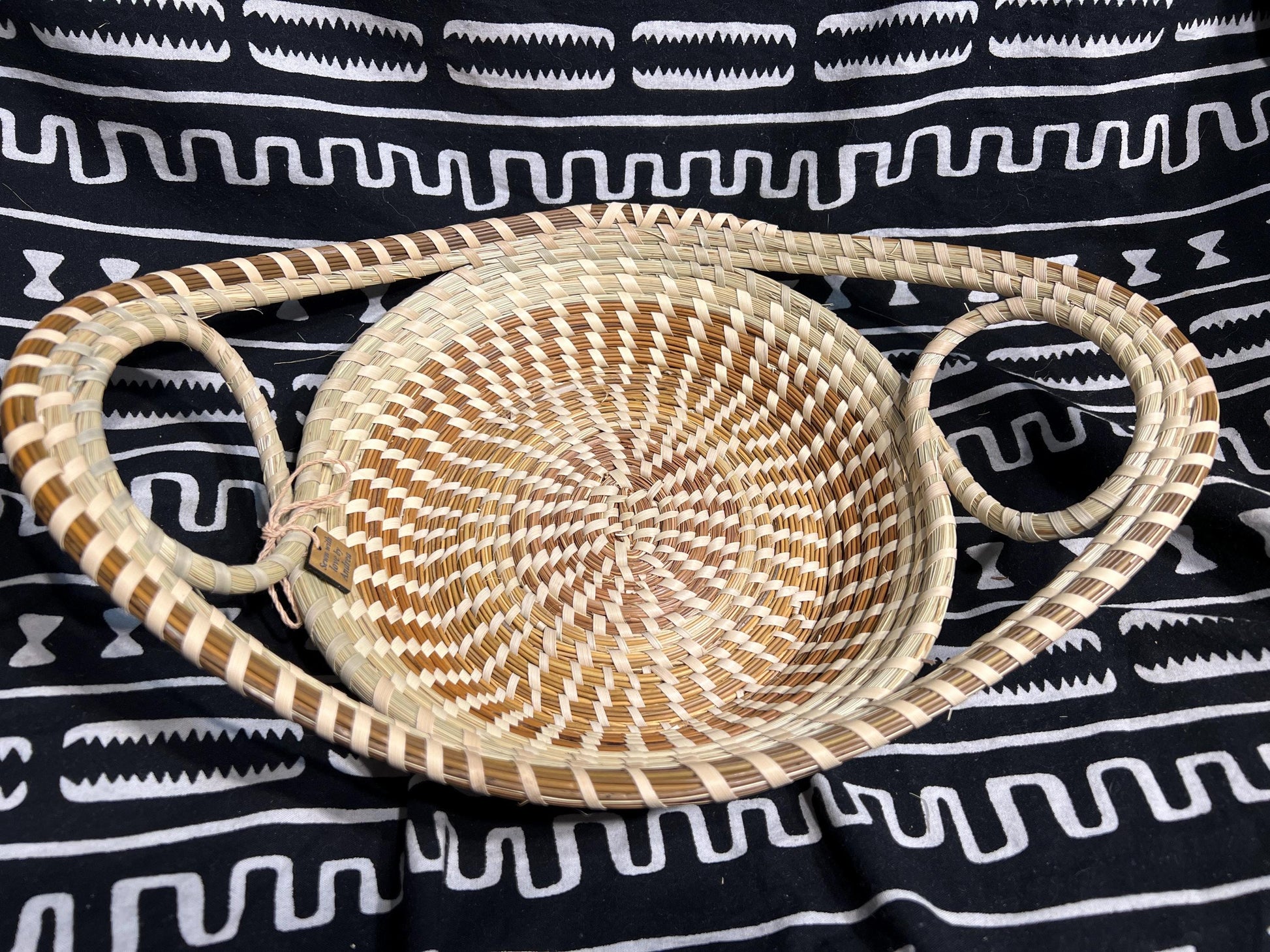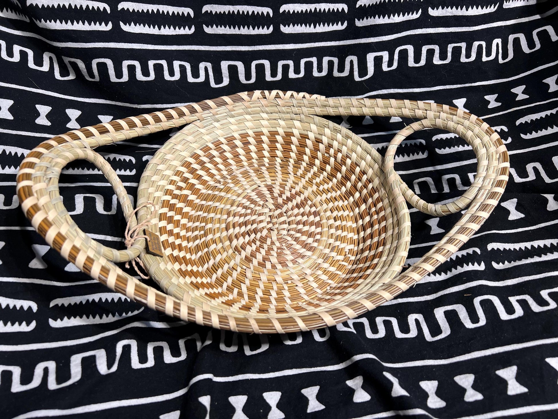 This Double Handle bread basket is the perfect gift handcrafted in the sweetgrass basket sewing tradition of the Gullah community in Charleston South Carolina, this hand-woven basket, is made from locally harvested materials including sweetgrass, bulrush, pine needles, and palmetto.