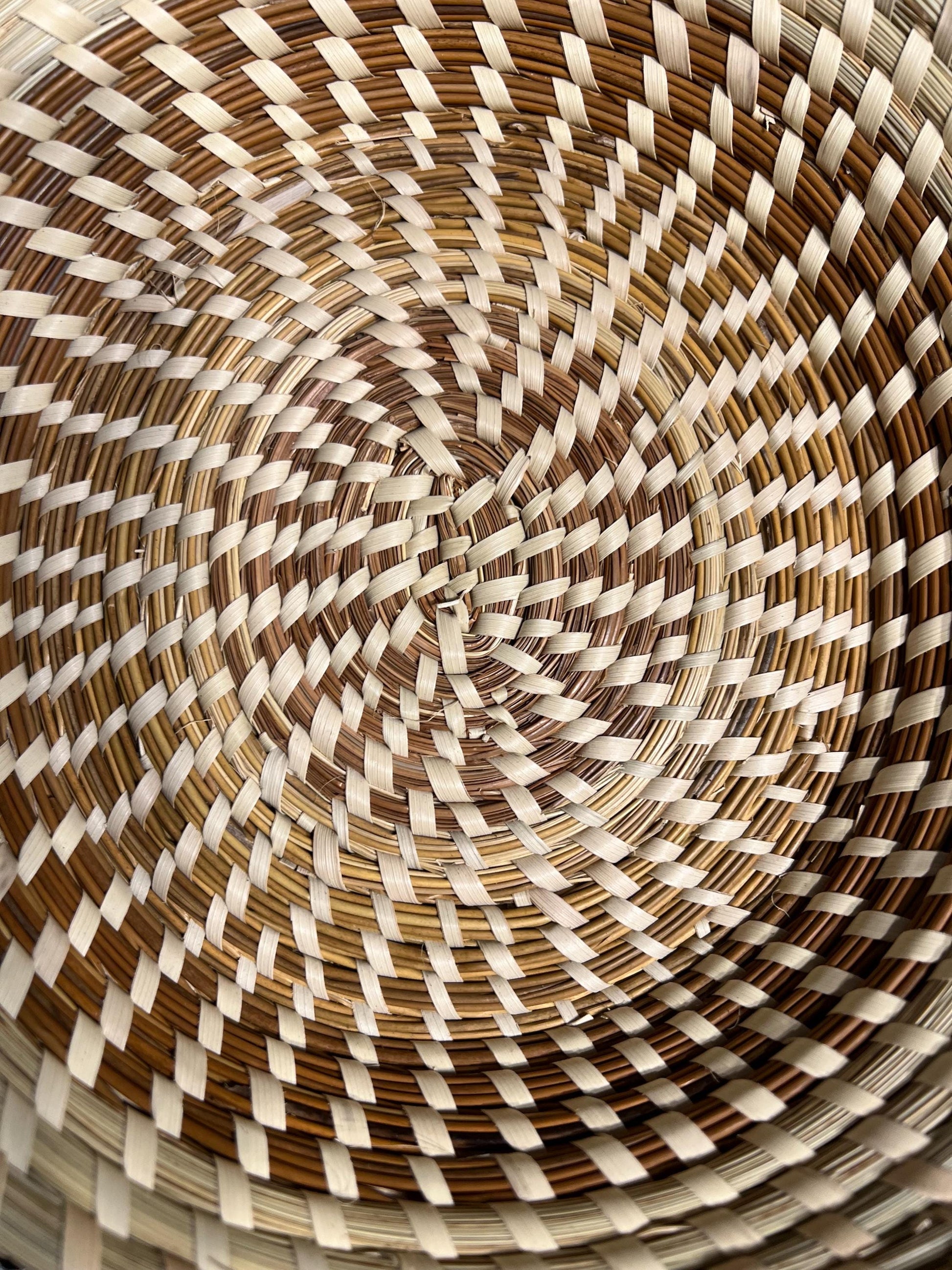 Hand-woven using sweetgrass, bulrush, palmetto, and pine needles.