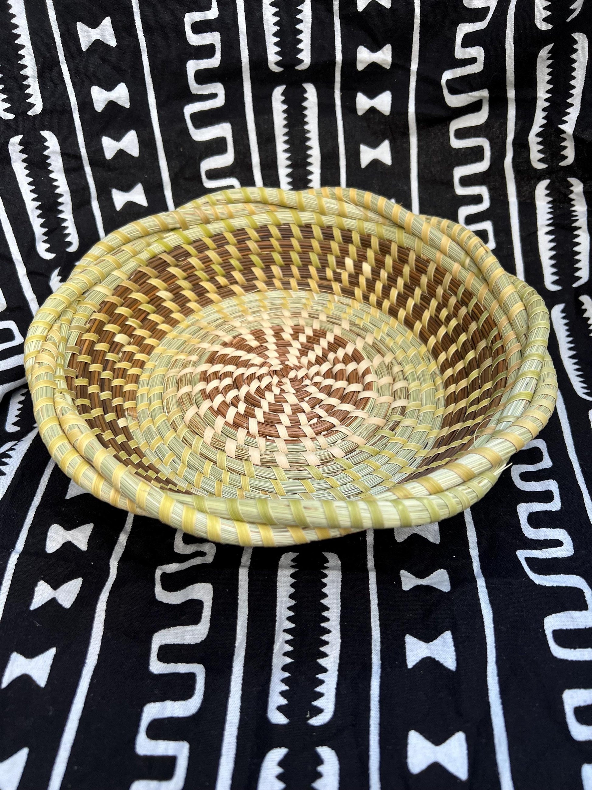 Handcrafted in the sweetgrass basket weaving tradition of the Gullah community of Charleston South Carolina, this hand-woven basket, is made from locally harvested materials including sweetgrass, bulrush, pine needles, and palmetto.