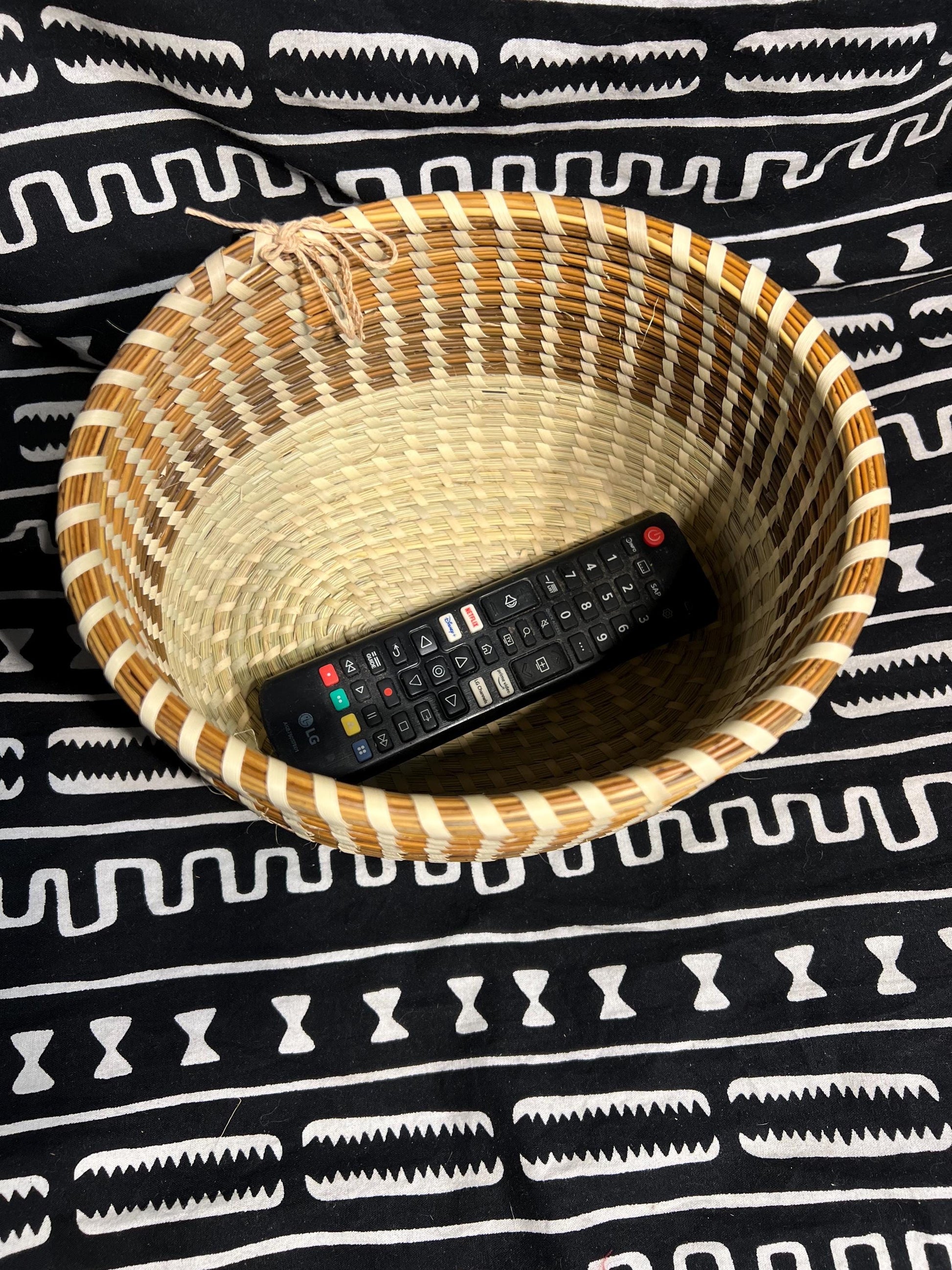 Handcrafted in the sweetgrass basket weaving tradition of the Gullah community in South Carolina, this hand-woven basket, is made from locally harvested materials.