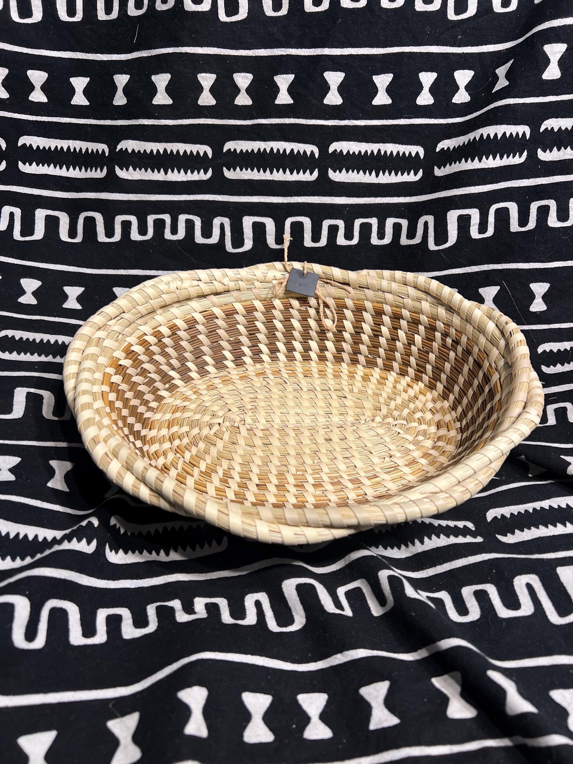 Handcrafted in the sweetgrass basket weaving tradition of the Gullah community of Charleston South Carolina, this hand-woven basket, is made from locally harvested materials including sweetgrass, bulrush, and palmetto.