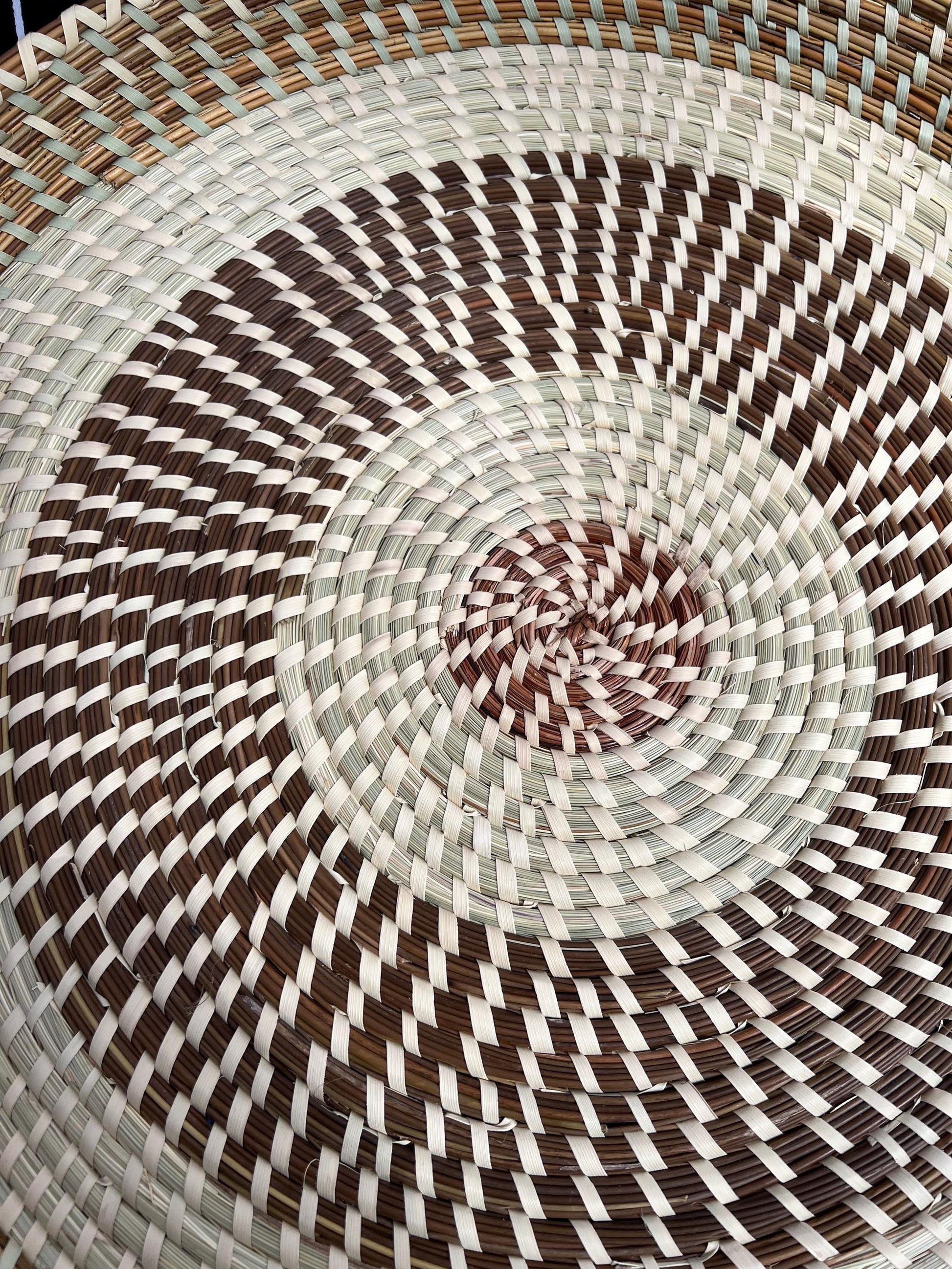 Hand-woven using sweetgrass, palmetto, and pine needles.