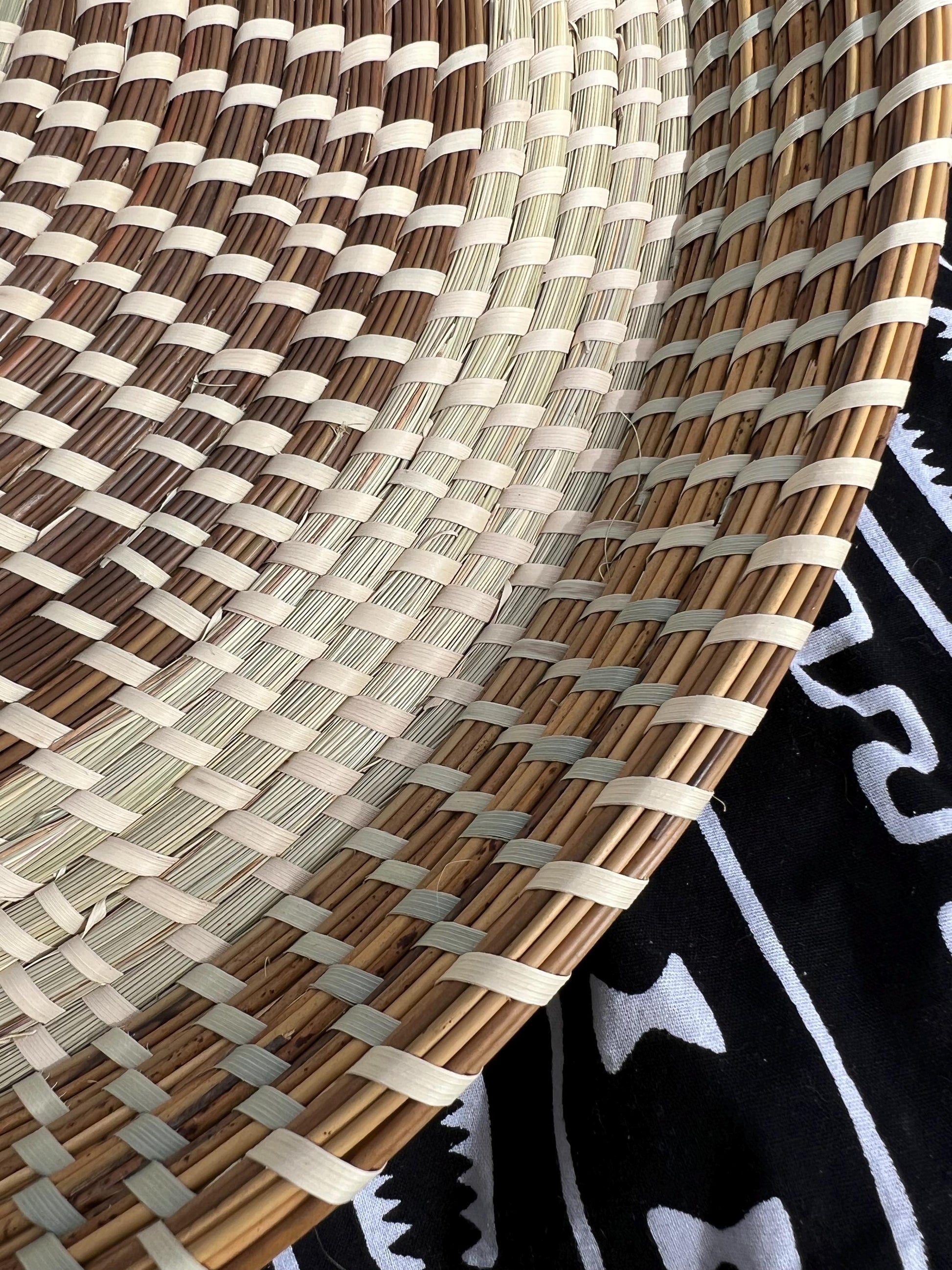 Over the last 10 generations, the Gullah weavers have carried on the craft traditions that were native to their African homelands to create baskets featuring exquisite patterns and intricate weaves, preserving traditional styles such as those once used to winnow rice. They use a combination of locally harvested sweetgrass, pine needles, bulrush, and palmetto to weave their unique pieces. Each weaver prides themselves on being intuitive weavers, each having their own unique and signature weaving styles, meaning no two baskets are ever alike. Their craft tradition is embedded into the cultural and physical landscape of this community which continues to reside in the Lowcountry of South Carolina and the nearby barrier islands.